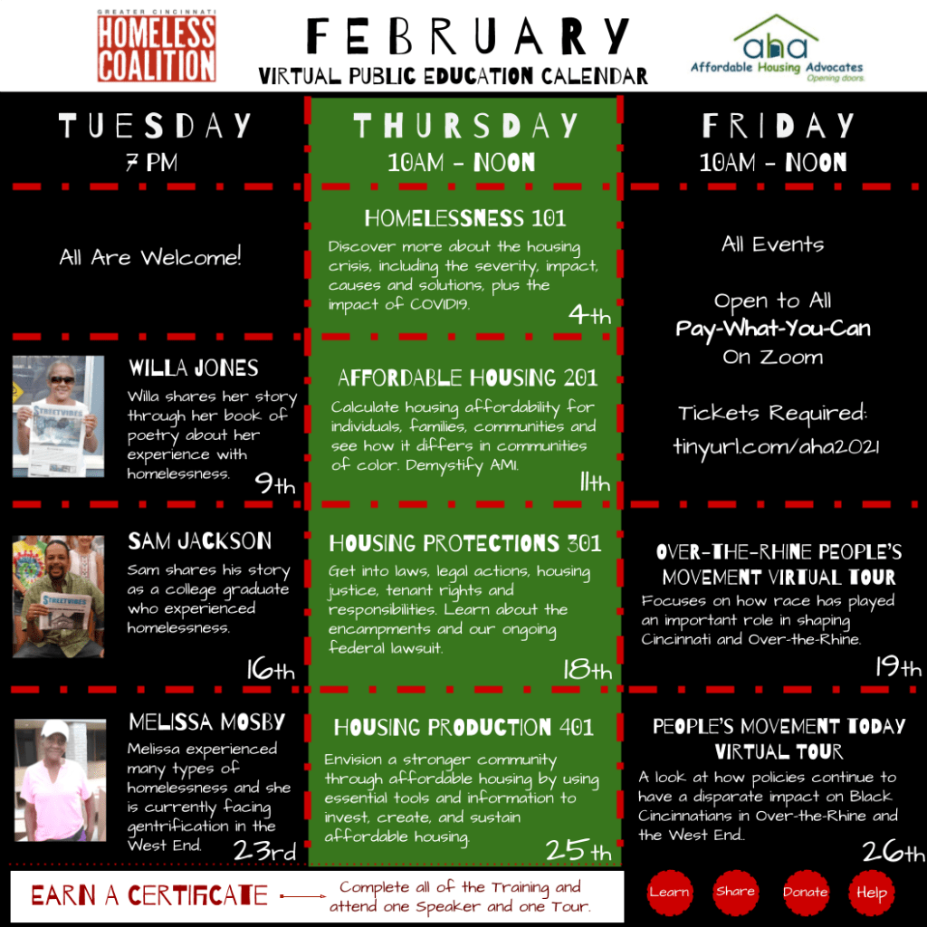 Everyday at the Homeless Coalition, we demand access to affordable housing, livable wages, and housing protections to everyone in our community. We recognize that the weight and burden of anti-Black racism cannot only be carried by those who are bravely facing displacement each day, but by our entire community who accepts the “false-peace” as our Black communities are erased by white generational wealth.