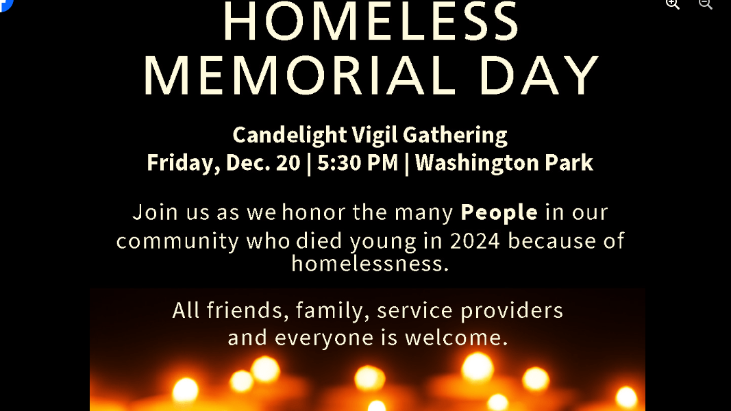Please join us this Friday evening to honor the lives of the people who passed away because of homelessness this year. Share this: Click to print (Opens in new window) Print Click to email a link to a friend (Opens in new window) Email More Click to share on Facebook (Opens in new window) Facebook Click to share on X (Opens in new window) X Click to share on Pinterest (Opens in new window) Pinterest Click to share on LinkedIn (Opens in new window) LinkedIn Like Loading... Related